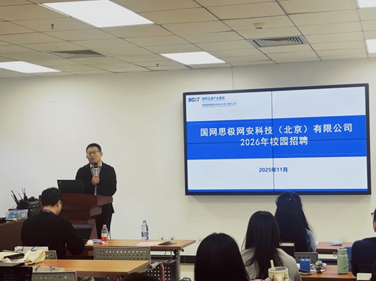 网络研究院创新领军工程博士李祉岐结合自身丰富的行业经验,为同学们带来了精彩的分享。他从网安专业的五大就业方向出发,详细讲解了各类技术岗位的分类和职业发展路径。他以国网思极网安公司为例,介绍了公司在网络安全领域的业务布局和人才需求。他强调了电力行业网络安全的重要战略地位,指出随着智能电网的发展,对网络安全人才的需求日益增长。他诚邀清华学子加入,携手共同守护国家电网公司关键信息基础设施的安全。