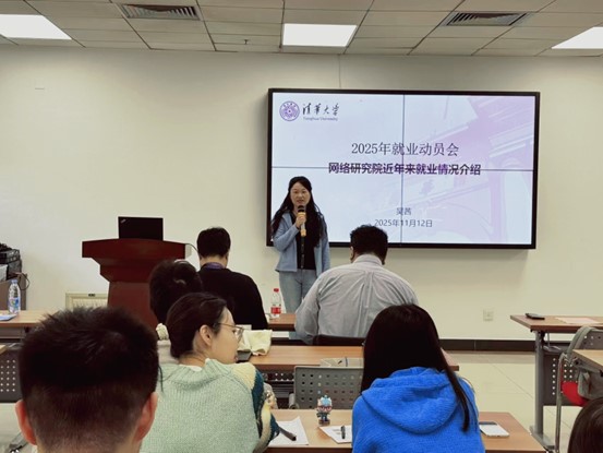 2025年11月12日下午,清华大学网络研究院2026届毕业生就业动员会在FIT楼1-312会议室召开,信息化技术中心党委副书记吴茜、学校学生职业发展中心职业生涯教育办公室主任关晓壮、网络研究院研工组长赖泽祺、就业主管于毅、创新领军工程博士李祉岐以及2026届毕业生参加了本次会议,会议由赖泽祺主持。
