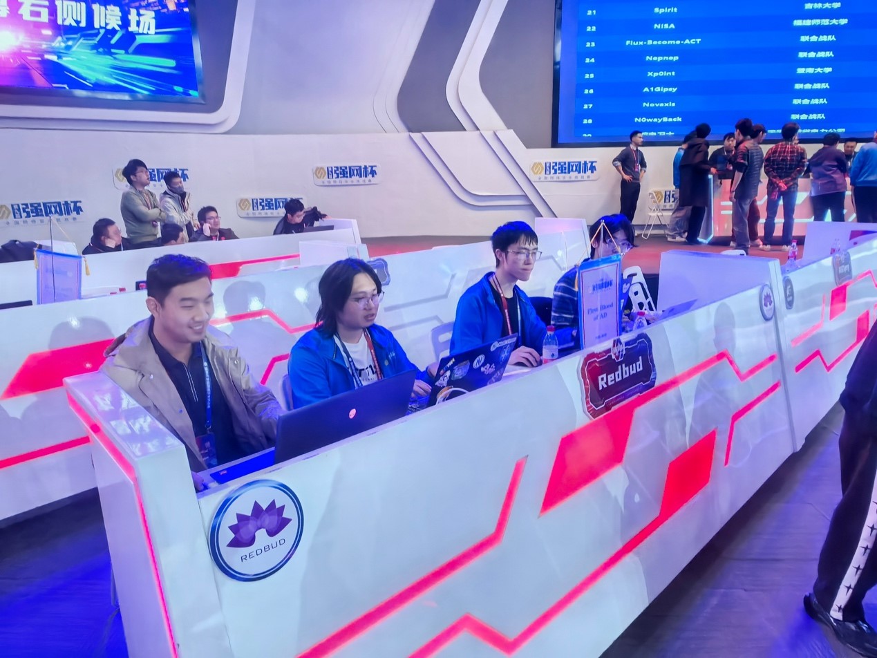 Redbud战队依托网络研究院指导的清华学生网络安全技术协会组建,战队现场参赛队员为网络研究院2023级硕士生王凯华、本科生唐琦、025级硕士生游宇凡、2025级博士生杨晶城,指导教师为网络研究院副研究员诸葛建伟和副教授陈建军。战队以第八名的成绩获得线上赛二等奖,成功入围线下决赛。线下决赛由32支来自全国网安企业、高校与社会组织的优秀战队共同参与激烈角逐,在为期两天的决赛中,Redbud战队展示出在真实世界软硬件破解(RW)与攻防对抗结合(AWDU)两个方向上的优异实践技能,以总榜第五名、高校队伍第二名的成绩获得一等奖奖项,诸葛建伟获强网优秀指导教师奖。