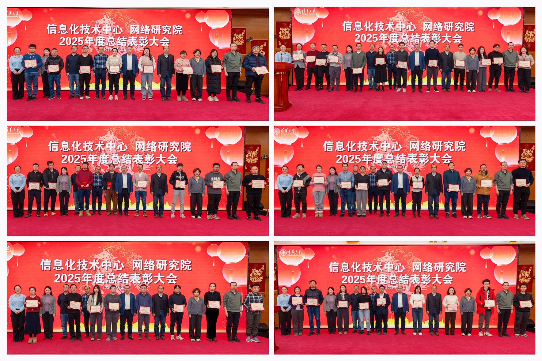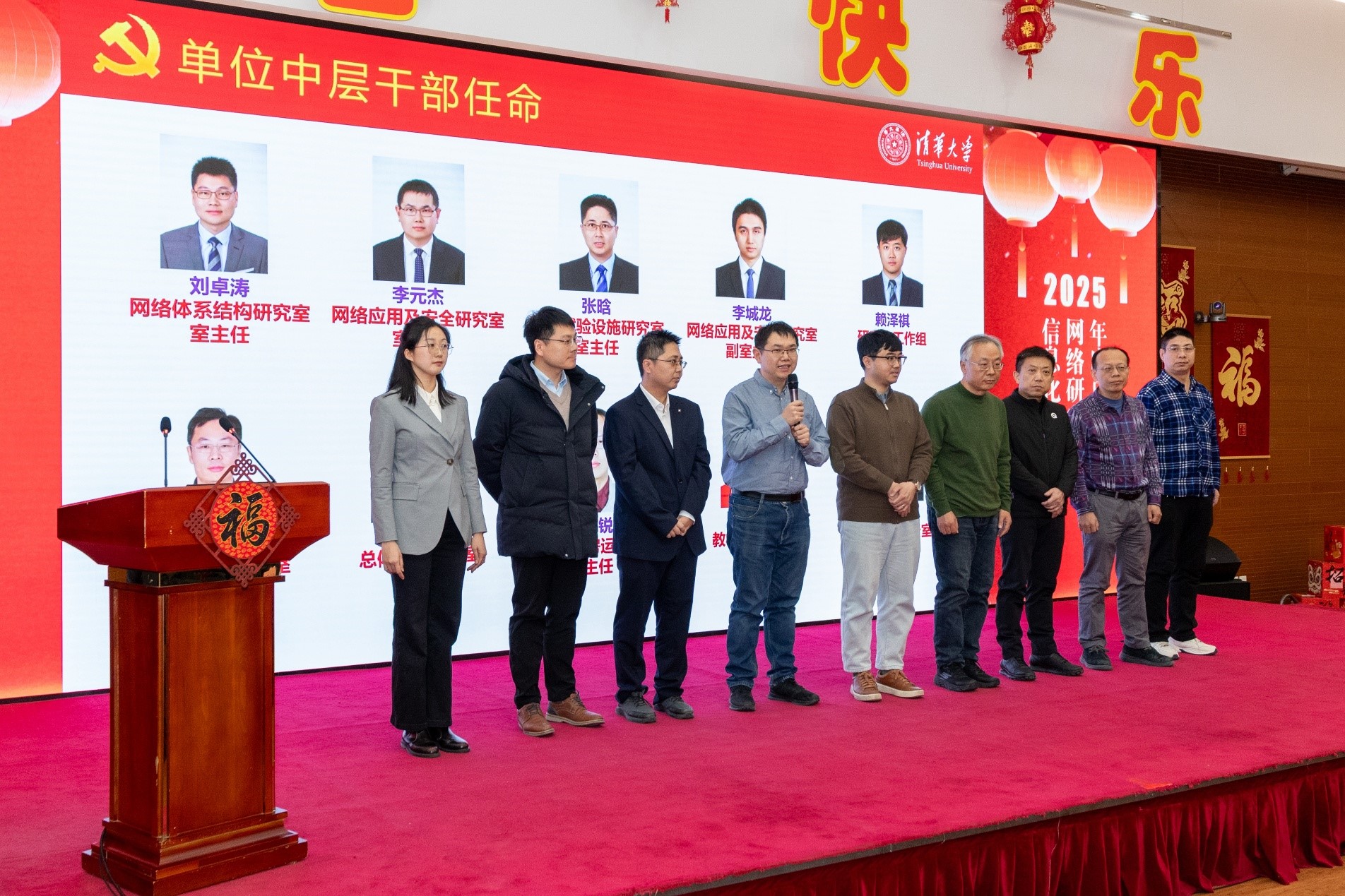 吴建平院士在讲话中指出,2025年是极不平凡、极不容易的一年,中心和网研院全体员工在服务国家和学校发展大局中克服困难,努力完成各项任务,涌现出一批新任室主任、学术骨干和先进个人。他首先向大家在2025年工作中付出的辛勤劳动和取得的良好成绩表示衷心感谢。他简单回顾了单位发展历程,着重指出原计算中心、电教中心和网络中心根据学校的战略部署,经历十多年的调整和融合,形成了当前中心和网研院“双轮驱动、协同发展”的清华模式,在支撑世界一流大学建设和服务国家网络强国战略中发挥了重要作用。他重温了2023年初校党委书记邱勇在“信息化技术中心和网络研究院成立十周年庆祝大会”上对中心和网研院所取得工作成绩的总结和殷切希望,强调要时刻牢记学校赋予中心和网研院的使命担当,不断改进工作、努力进取。他对中心网研院的发展提出六点希望:一是发展规划先行,结合国家“十五五”规划,制定符合未来发展趋势和高校实际需求的学校信息化建设规划和学科发展规划,确保发展目标明确;二是服务国家战略,要始终以服务国家战略和世界一流大学建设为己任,这是生存发展根本;三是夯实发展基础,团结协作,确保网络空间安全学科对学校网络安全和信息化工作强力支撑,做到“守得住校园网,打得赢攻坚战”;四是继续发扬凝心聚力、无私奉献的工作精神;五是保持认真做事、精益求精的工作态度;六是保持艰苦奋斗、廉洁自律的工作作风。他最后强调,中心和网研院肩负着为学校迈入世界一流大学前列提供信息化支撑的重任,面对人工智能等新技术带来的机遇与挑战,我们必须经得起考验,紧跟时代发展步伐,不辜负全校师生的信任与期待,为学校事业发展做出新的更大贡献。