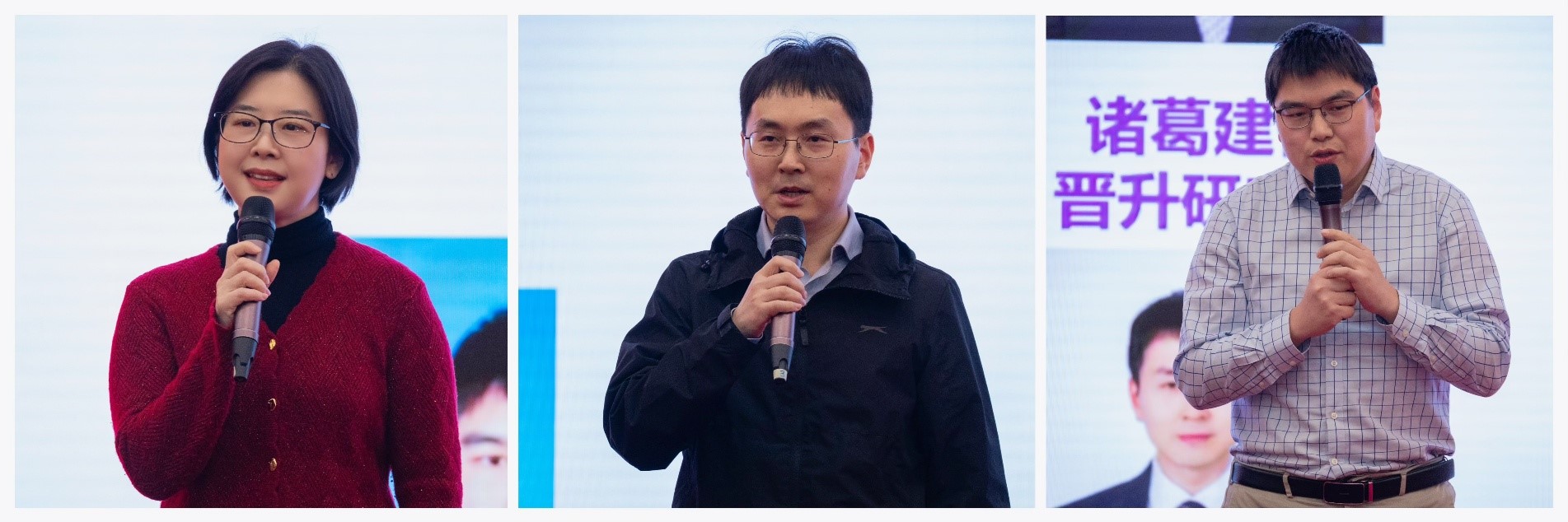 2025年职称晋升教职工潘丽、何林、刘保君(从左到右)发言