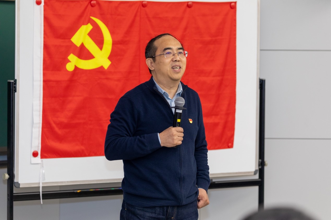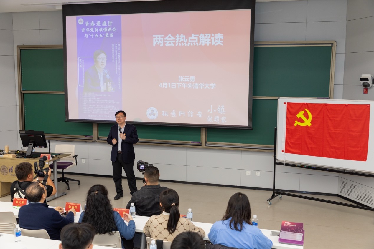 为深入学习贯彻全国两会精神,前瞻领会“十五五”发展蓝图,切实把青年党员的思想和行动统一到党中央决策部署上来,推动党建与学科发展深度融合,2026年4月1日下午,网络研究院各研究生党支部(网博5、网硕5、网博4、网硕4、网研23)在第三教学楼联合开展“青春逢盛世——青年党员读懂两会与‘十五五’蓝图”专题党课学习。本次活动特邀十三届全国政协委员、中国联通集团网络与信息安全部总经理张云勇作专题讲授。网络研究院院长徐明伟出席活动,院党委副书记吴茜主持会议,院全体研究生党员、研究生入党积极分子等100余人集中参加了本次学习。